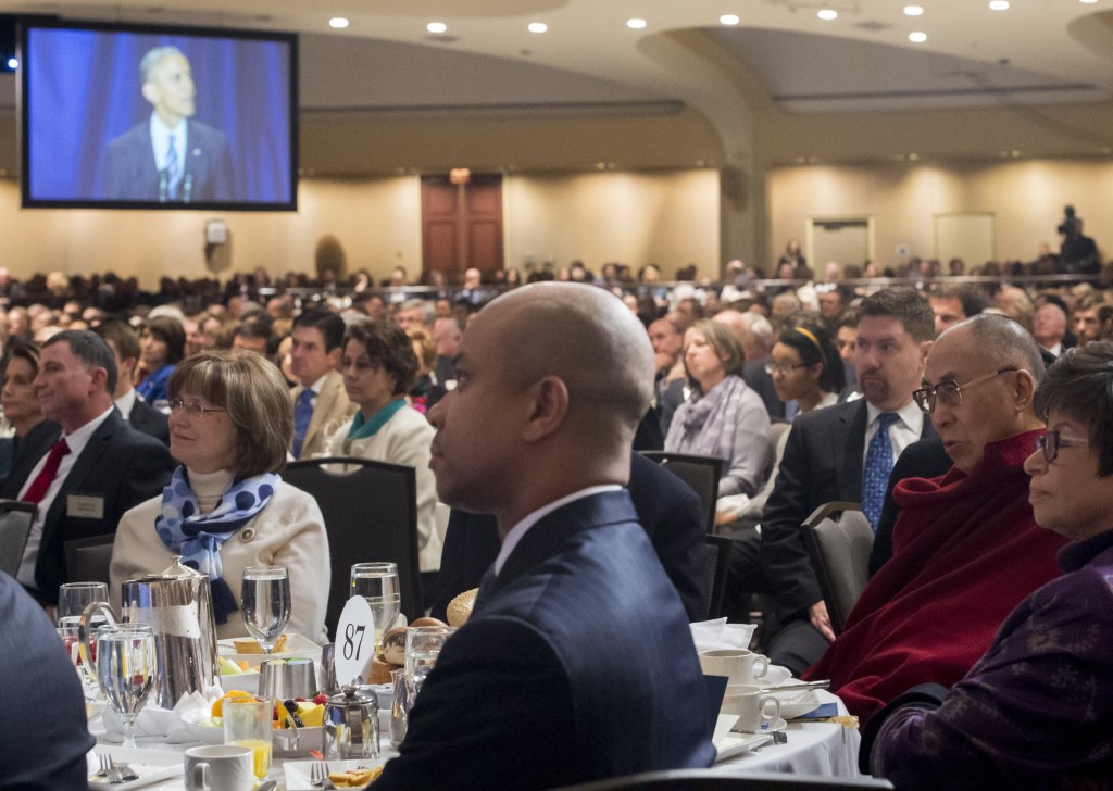 Among those attending the annual gathering of politicians, dignitaries and faith leaders was the Dalai Lama, the spiritual leader of Tibetan Buddhism. As with the Dalai Lama’s past visits to Washington, his attendance at Thursday’s breakfast drew criticism from Beijing, which sees him as an anti-Chinese separatist because of his quest for greater Tibetan autonomy.