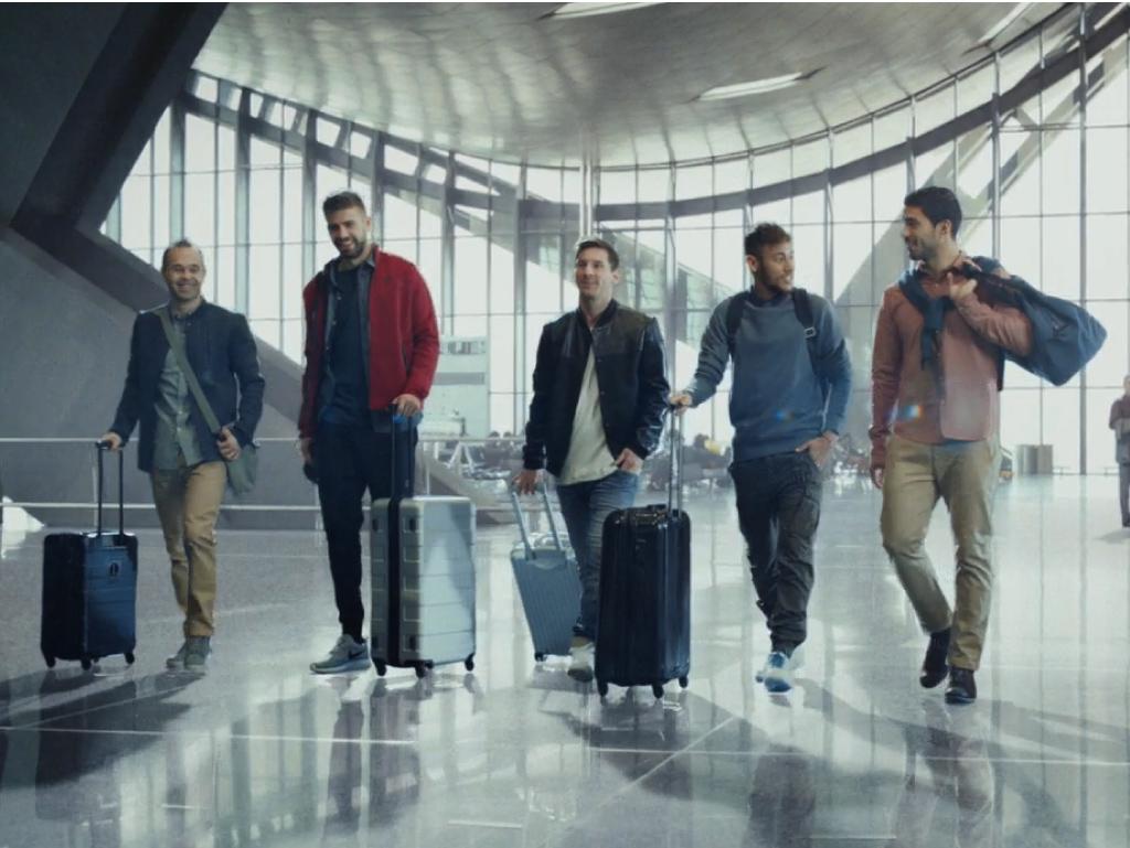 The 62-second advert begins with Iniesta enjoying a flight away from Barcelona