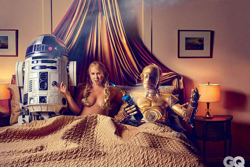 The front cover of American GQ features Schumer sucking Star Wars character C-3PO's finger.