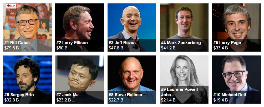 - Bill Gates –who’s also the world’s richest man – ranks number one among tech tycoons, with a net worth of $79.6 billion.