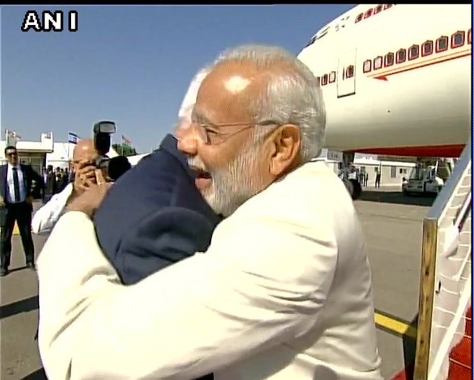 Pictures of Israeli PM welcoming Modi at Ben Gurion airport.